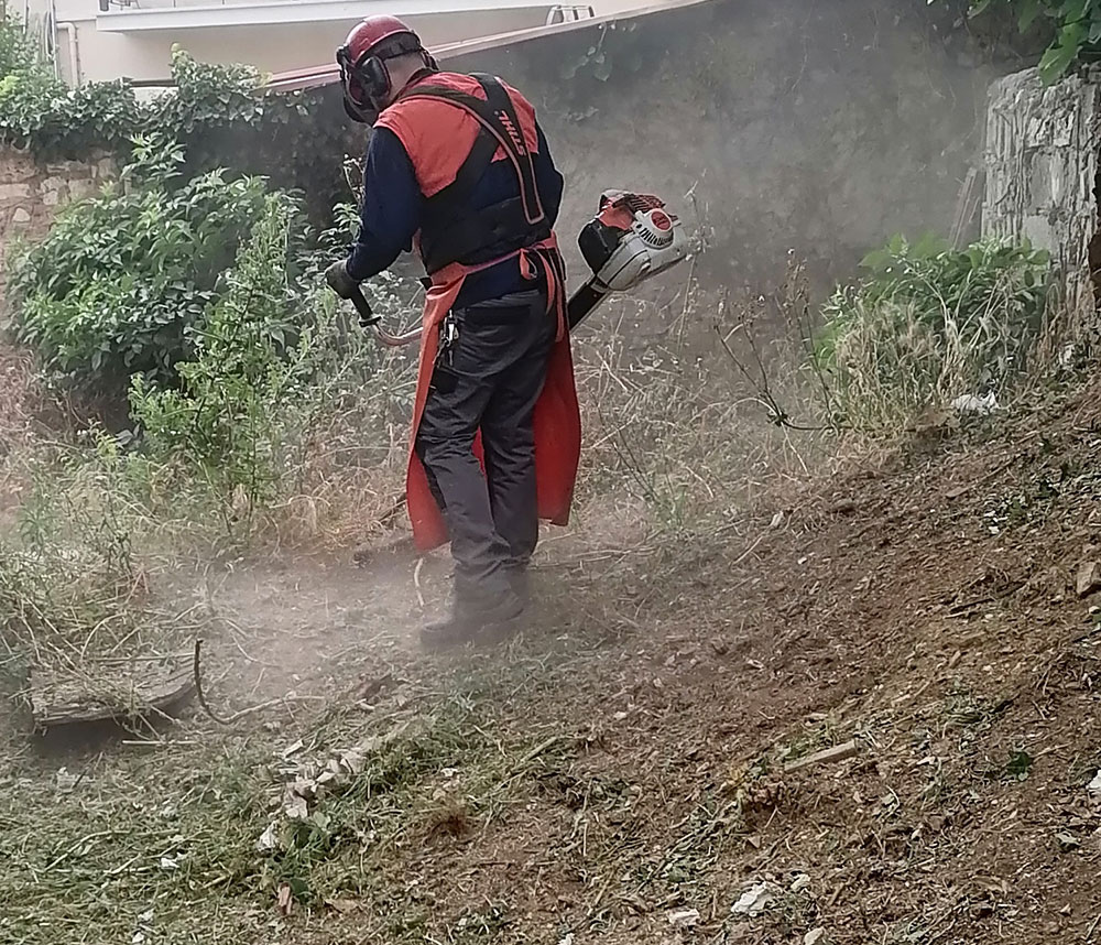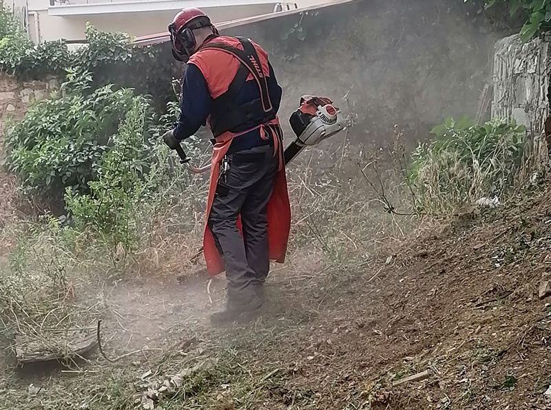 Από ξερά χόρτα, βάτα, ζιζάνια με χορτοκοπτικά μηχανήματα, καταστροφέα, ακόμη και με σκαπτικά μηχανήματα εάν η κατάσταση το απαιτεί.